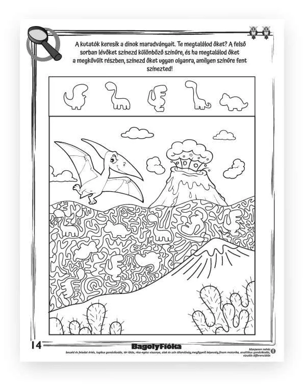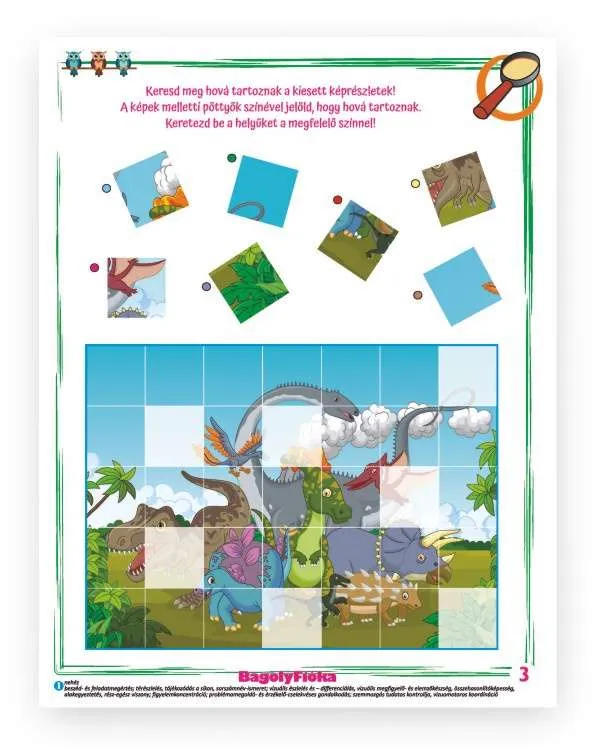 A „Bagolyfióka – Csupa dínó” kreatív foglalkoztató tökéletes választás az óvodás korosztály számára, akik kedvelik a játékos tanulást és fejlődést.